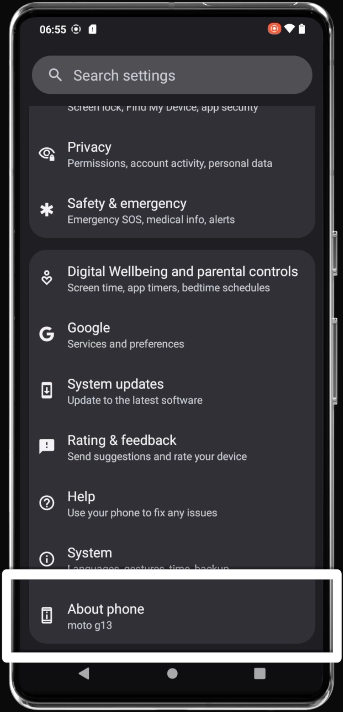 Open ‘About phone’
