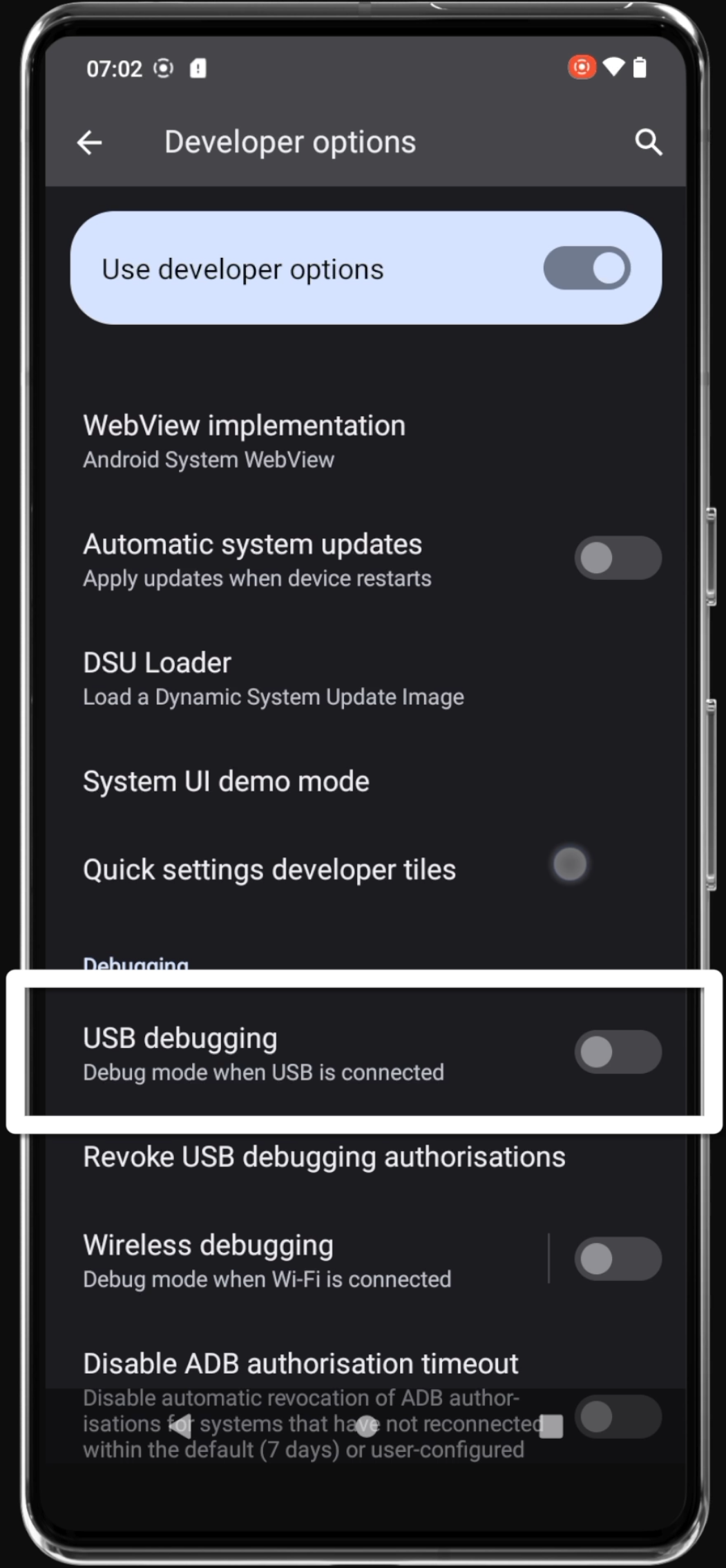 Search ‘developer options’