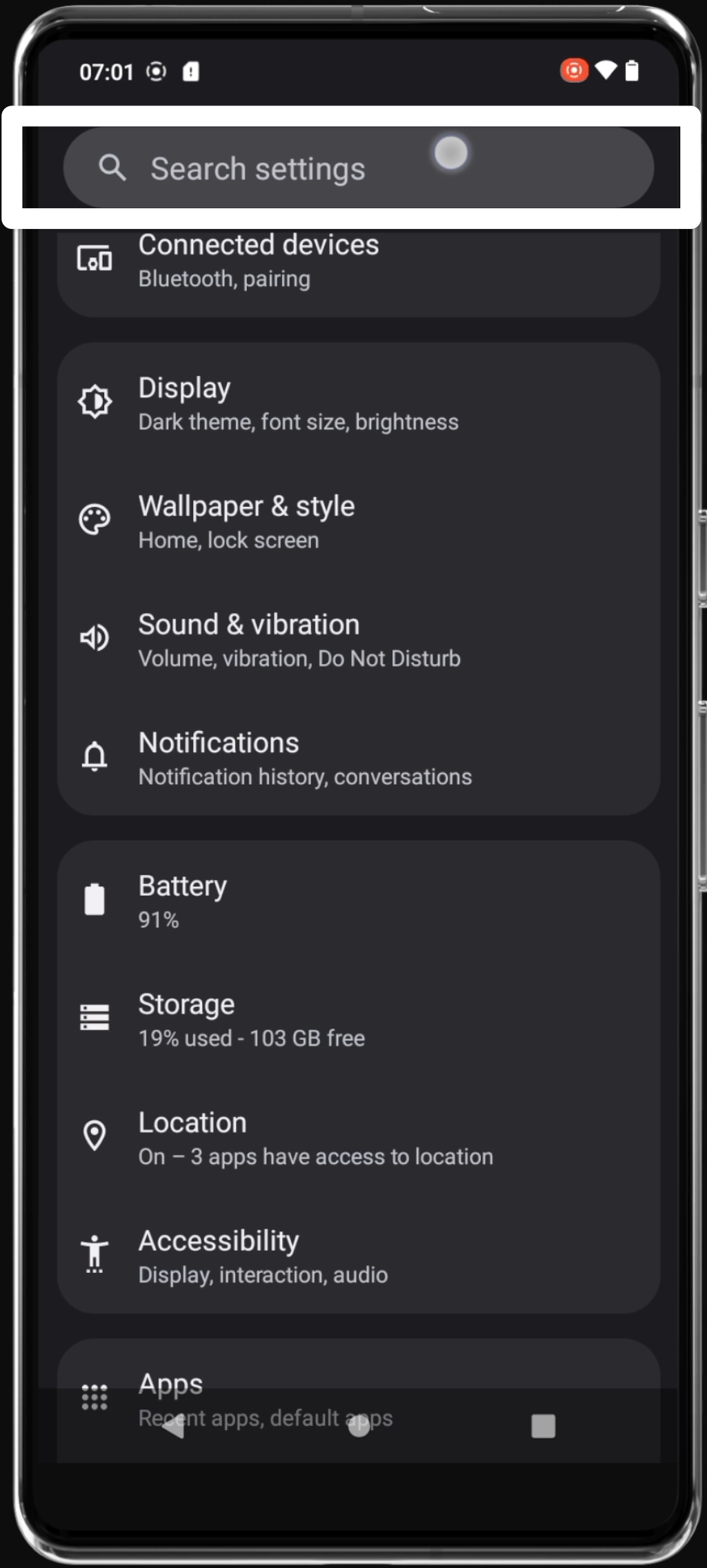 - Search for “developer options” in the search bar